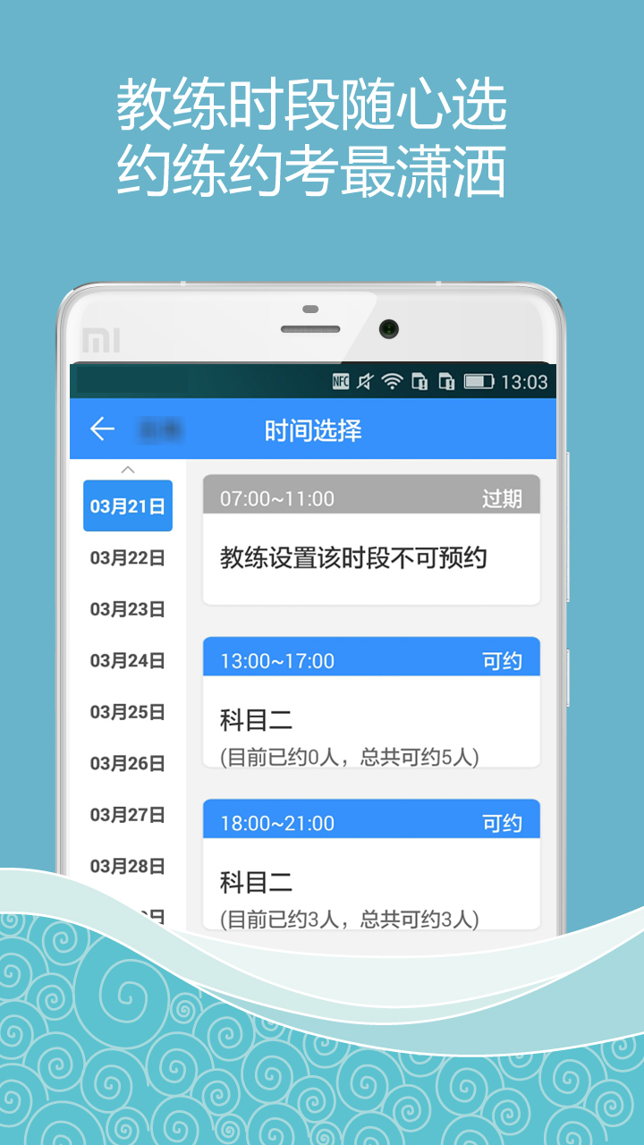 手机约练:练车时段随心选,随时随地相约就约