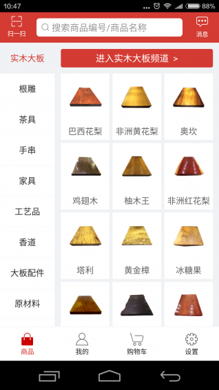 创之源提供上万款各式红木产品,其中产品总共有八大类:家具、根雕、佛珠、茶具、工艺品、香道、实木大板、大板配件,满足各种客户的需求。此外,创之源每日均会有新的产品上架更新,同时配合PC端使整个红木集中采购平台更加便利化、人性化、舒适化。