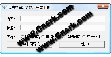 信息框自定义娱乐生成工具是一款可以生成多种系统常见的弹框来娱乐的小工具,您可以用这款生成工具来随意写上想生成的弹框,然后利用截图工具借此来逗朋友们开心。