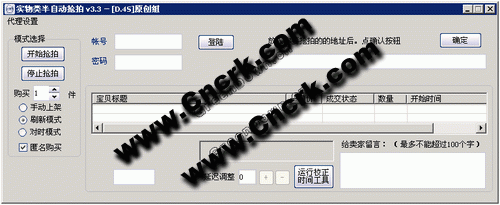 看标题很容易理解,就是一款自动抢拍宝贝的软件。卖家没货了,买家渴望和急于购得;通过淘宝抢拍工具,能够第一时间抢拍卖家刚上架的宝贝。并且可以更换淘宝ID直至将宝贝拍完都行。