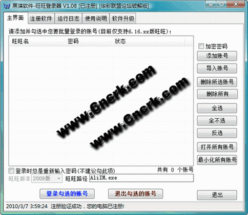 本软件用来批量登录旺旺,方便管理您的旺旺账号,目前只支持2009版旺旺.