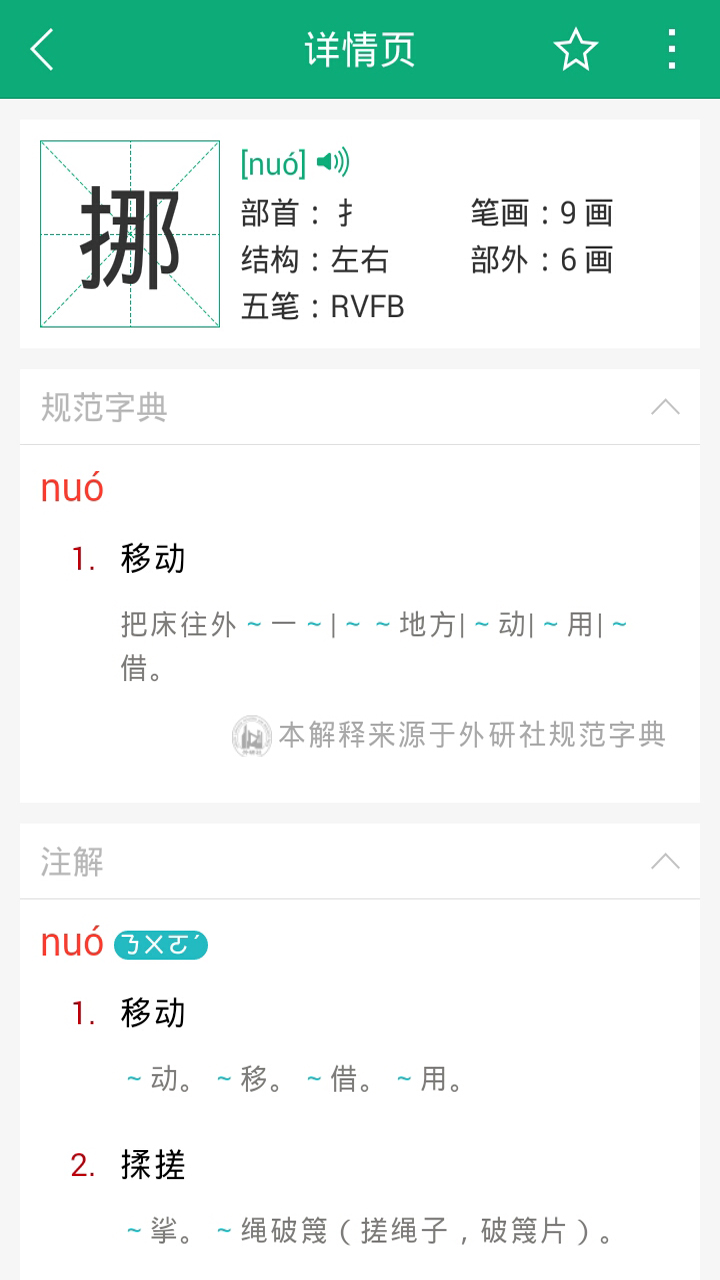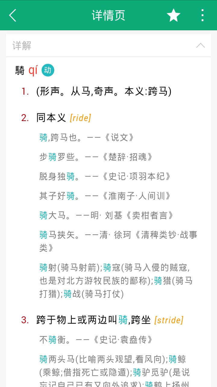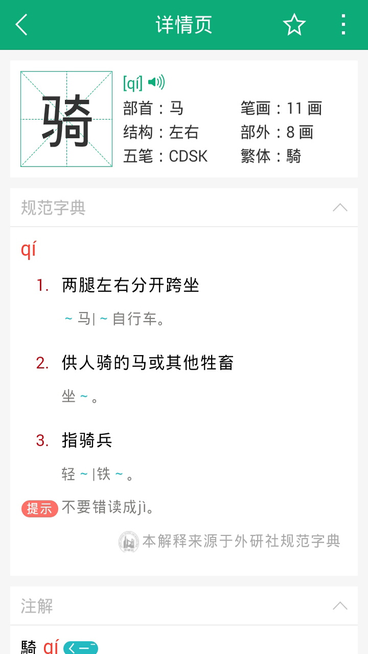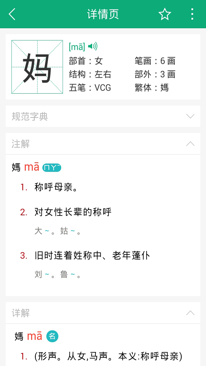 2. 每个生字包含详细的解释,如拼音、部首、注解等,并提供英文翻译,多角度学习生字;
