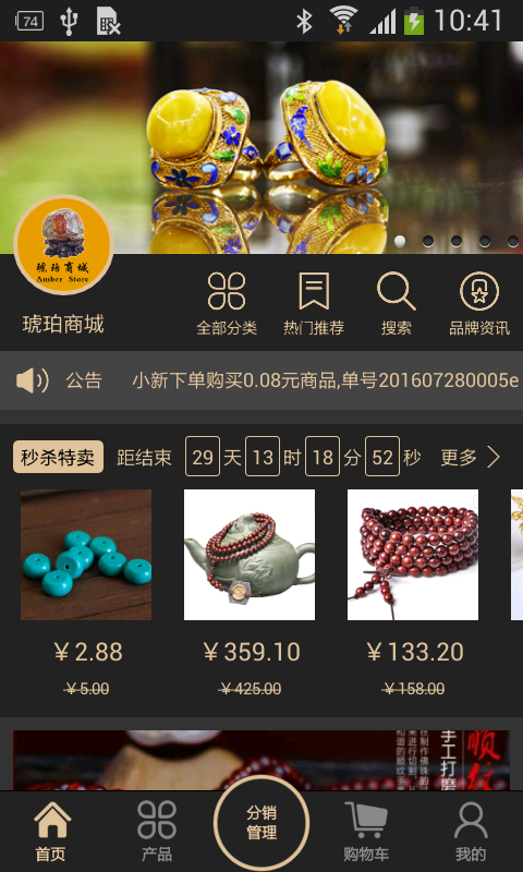 【首页】:琥珀商城app专门为用户提供各种各样的产品信息,用户可以快捷地从这里了解到最新的产品信息。【产品】:琥珀商城app提供相关各种各样的产品分类,方便客户查询购买。