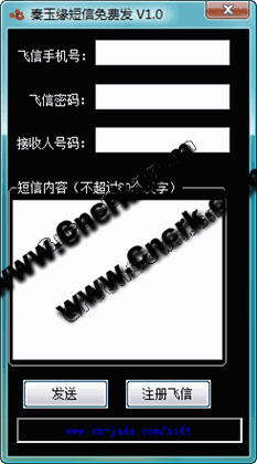 一款免费支持发短信的软件。此软件调用飞信组件开发而成,所以需要先注册飞信的号码,发送方需为飞信好友!特点:绿色、小巧,单个文件。无发送条数和其它限制,永久免费。