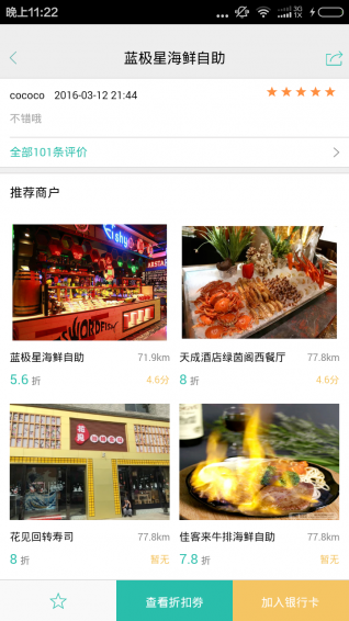 天天约惠,天天有优惠。天天约惠为你发现身边的美食,并提供优惠折扣。在应用中注册账号,完成银行卡绑定,获取商家优惠券,消费后,直接刷卡即可享受打折优惠。天天约惠”APP是由四川芯众惠网络技术有限公司与中国银联、银联商务设计研发、打造的“先体验,后付费”全新o2o消费模式APP,公司与各大金融机构有紧密合作,组建实力雄厚的技术和运营团队,旨在打造连接人与服务的智慧城市APP。我们以奉献网络科技而连接人与服务,为客户创造价值为自身的社会使命,以提供各种O2O解决方案。