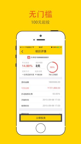 1、投资门槛低100元起投,享受年化收益高达8%~16%;2、操作便捷,容易上手,10秒注册,30秒完成投资;