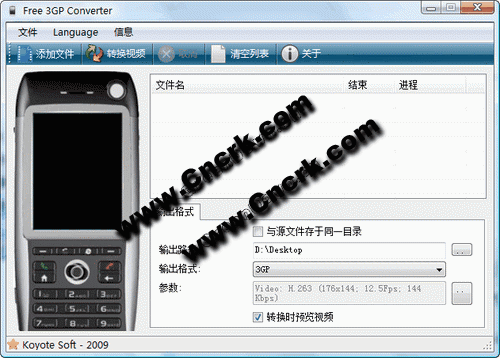 Free 3GP Converter V1.3 多国语言官方安装版 免费3GP转换器是一个免费的转换所有的视频到您的手机。在许多视频格式,如AVI,MP4,psp,3GP,3G2,FLV,mkv,WMV,ASF,检验手段,QuickTime进行的MPEG,VCD光盘,VOB的...