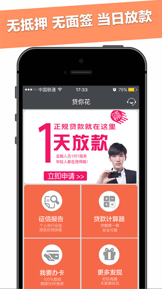 最近急用钱,可工资还没发,手头比较紧;找父母要又不好意思,找亲戚朋友借又开不了口,怎么办?“贷你花”为您解决这种烦恼,3分钟即可完成借款申请,全程机器自动处理,最快可在10分钟内放款。
