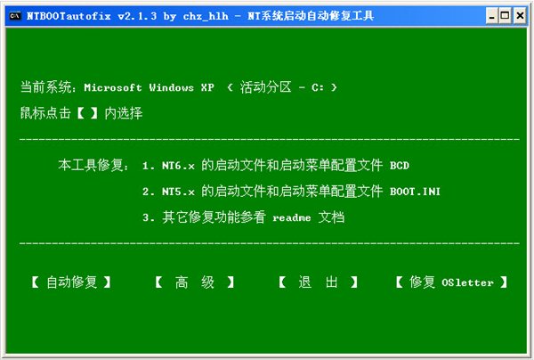 "自动修复"自动判断和系统启动有关的条件并自动修复程序支持的盘符上的NT系统启动,无需用户手工干预;