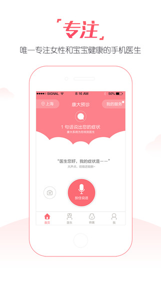 康大预诊app用户不仅能和医生交流,咨询问题,还能够享受到由专家医生自定义的差异化服务。呵护女性,关爱儿童一直是康大预诊所倡导的价值观。康大预诊app