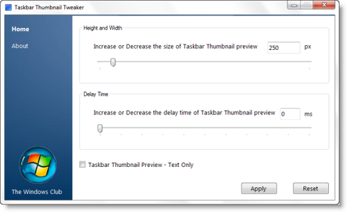 尽管人们可以手动编辑注册表,使Windows7任务栏预览出现较快或增加任务栏缩略图预览的大小,这个免费的程序可以让你更加容易地操作!它甚至还可以关闭缩略图预览功能。