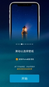 1、在本站安装该应用,打开后进入界面,通过滑动选择壁纸,然后点击“开始”。