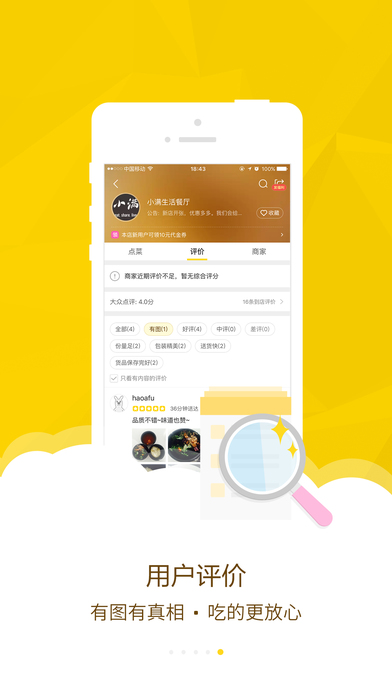 覆盖50000家餐厅,5000品牌连锁餐厅,全国已开通250+城市。蛋糕、宵夜、各种美食应用尽有,想订神马就定神马!