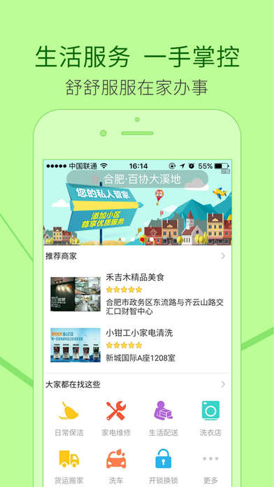 上门服务:异业合作,上门服务,洗衣家政,速运快递,外卖汽车服务,应有尽有。