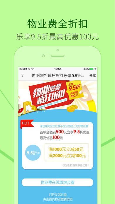 缴费折扣:水电、燃气费、物业费一键缴纳,在线缴费,红包多多。