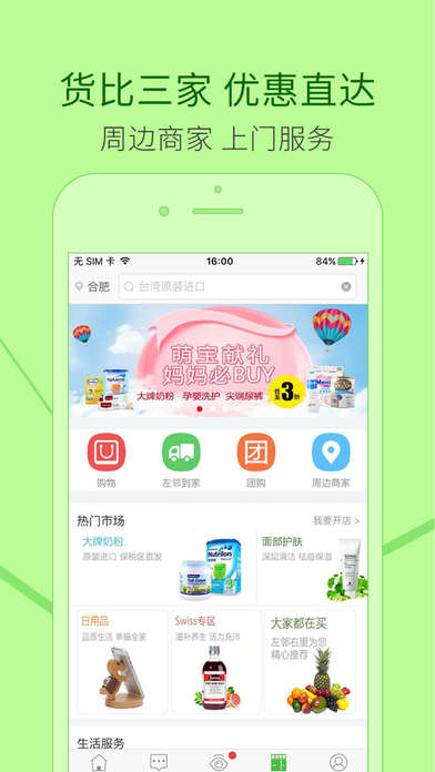 闲置市场:新旧宝贝邻里跳蚤,友邻互助随时交易,技能交换,邻里间免费提供帮助。