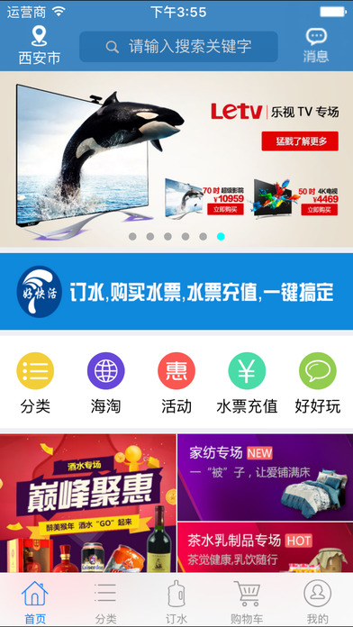 1、好快活商城-送货速度最快的商城,提供一键订水;2、并销售家用电器、海淘专区、家居清洁、商务办公、食品酒水、母婴玩具、洗护护理、生鲜粮油、3G数码、汽车用品、运动户外等优质商品;