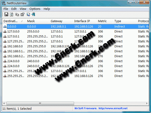 NetRouteView 一款小巧的windows中route.exe图形化软件。它显示了当前网络上的所有路线清单,包括目的地,掩码,网关,接口的ip地址,十进制值,类型,协议,时长(以秒计),接口名称和mac地址。支持ip v6