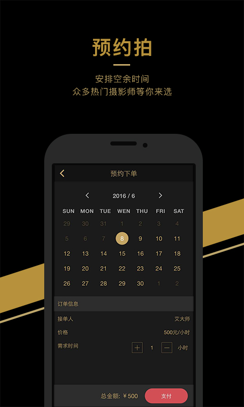 利用零碎时间提供临时性摄影服务,艾大师提供的是一个产生互通和信任的摄影双向平台,