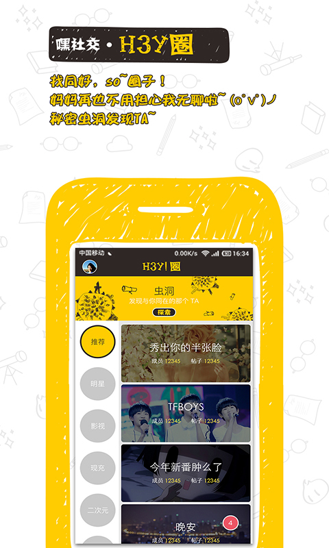 【圈】迅速帮你找到心头好~!大家一起饭爱豆萌二次元讨论所有爱聊的!逮住一个好朋友就要马上开始聊聊聊才不负人生呀~更何况H3Y!的聊天方式这么特别,更适合发展同好情谊呀