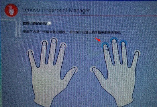2、选择录入的手指;此步骤用手指重复录入指纹读取器
