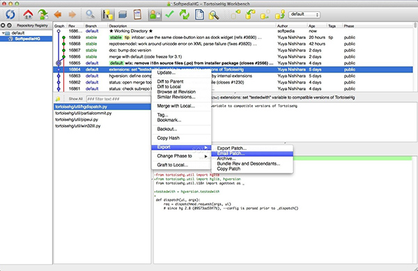此外,TortoiseHg提供的选项与水银的指挥和检查返回的结果。如下,你可以排序的数据相关的所有修改到指定的文件夹或文件和检索过去的版本或者更新你的工作目录所需的修订。