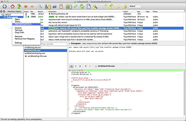 简单的用户界面从TortoiseHg的直观的界面,您可以快速轻松地创建新的库,添加新文件、同步数据、查看文件历史,克隆库,从库中删除文件和重命名。由于覆盖处理程序可以识别和控制新增文件容易得多。