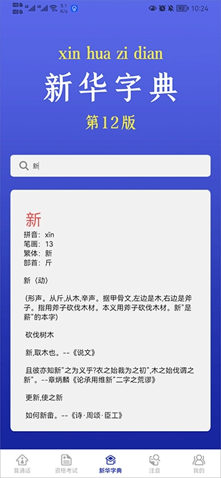 4、于新华字典界面,用户仅需在搜索框内输入想要查询的字词,便能详尽知晓该字词的拼音、注释等相关信息。