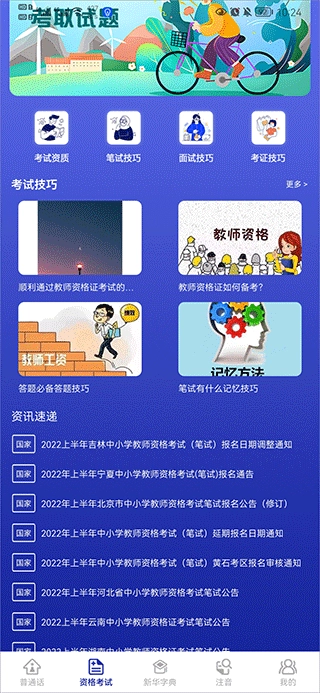 3、在资格考试界面,用户能够详细知晓中小学教师资格证的笔试技巧、面试技巧,以及实时更新的公告,助力用户更顺利地通过考试。