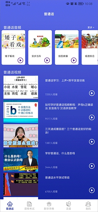 1. 开启终身教育平台云课堂,于普通话页面挑选音频与视频展开学习。