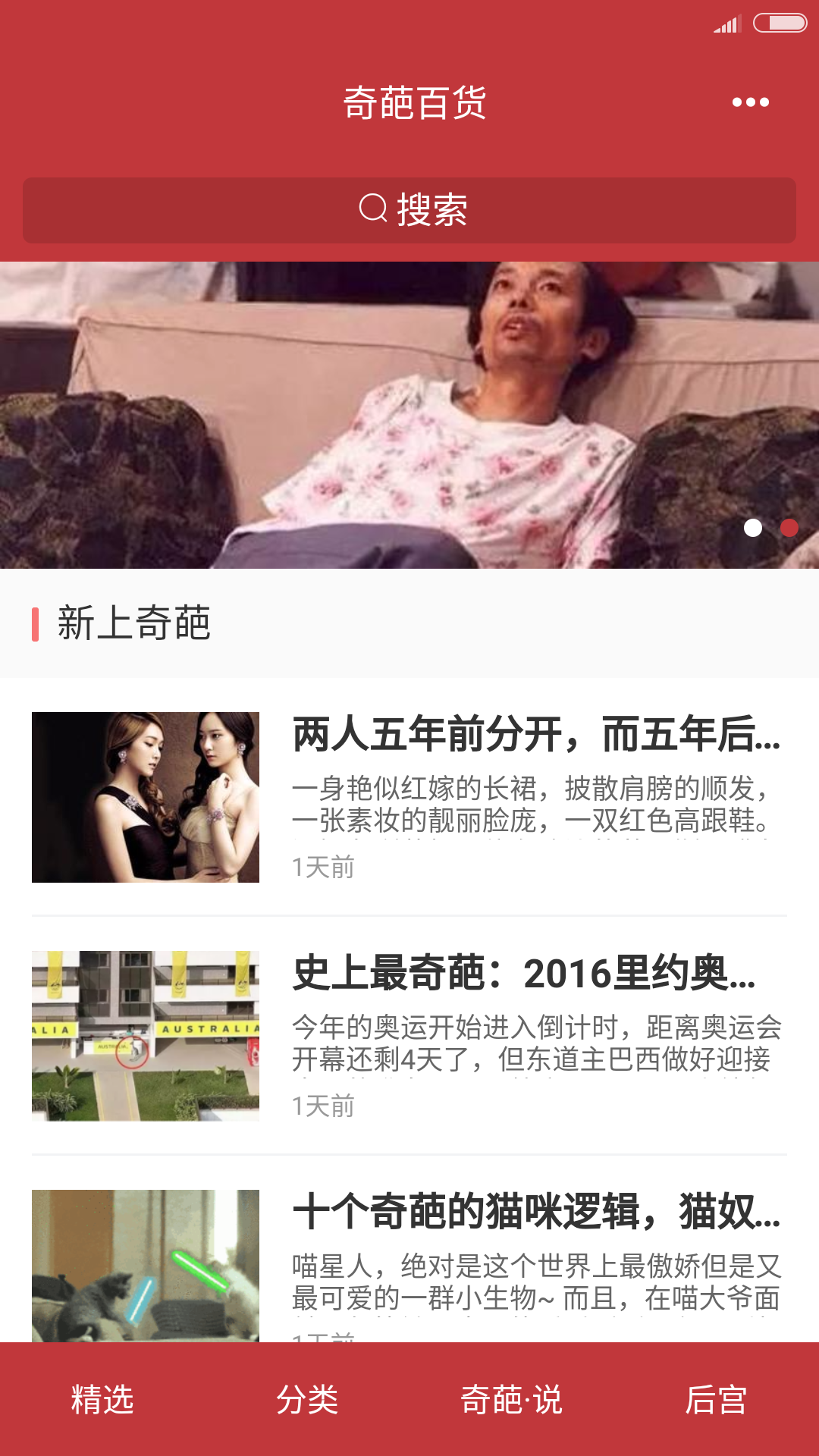 1、初版,还有很多要提高的地方,感谢首批勇敢的用户。2、目前app分为四个板块,精选,分类,奇葩·说,以及后宫。
