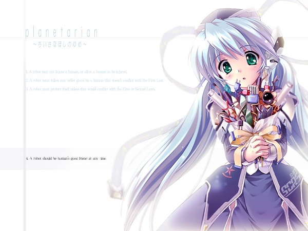 星野梦美是在无人都市中,废弃的“花菱百货屋顶天象馆”里近30年间一直等待着客人来访的少女型接待机器人。