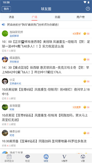 4、社区球吧:针对足球、篮球赛事进行原创分析,营造一个专属于球迷的聊球社区。