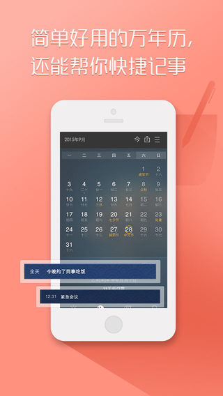 2、记事功能新定义,重点记事每年农历重复提醒。