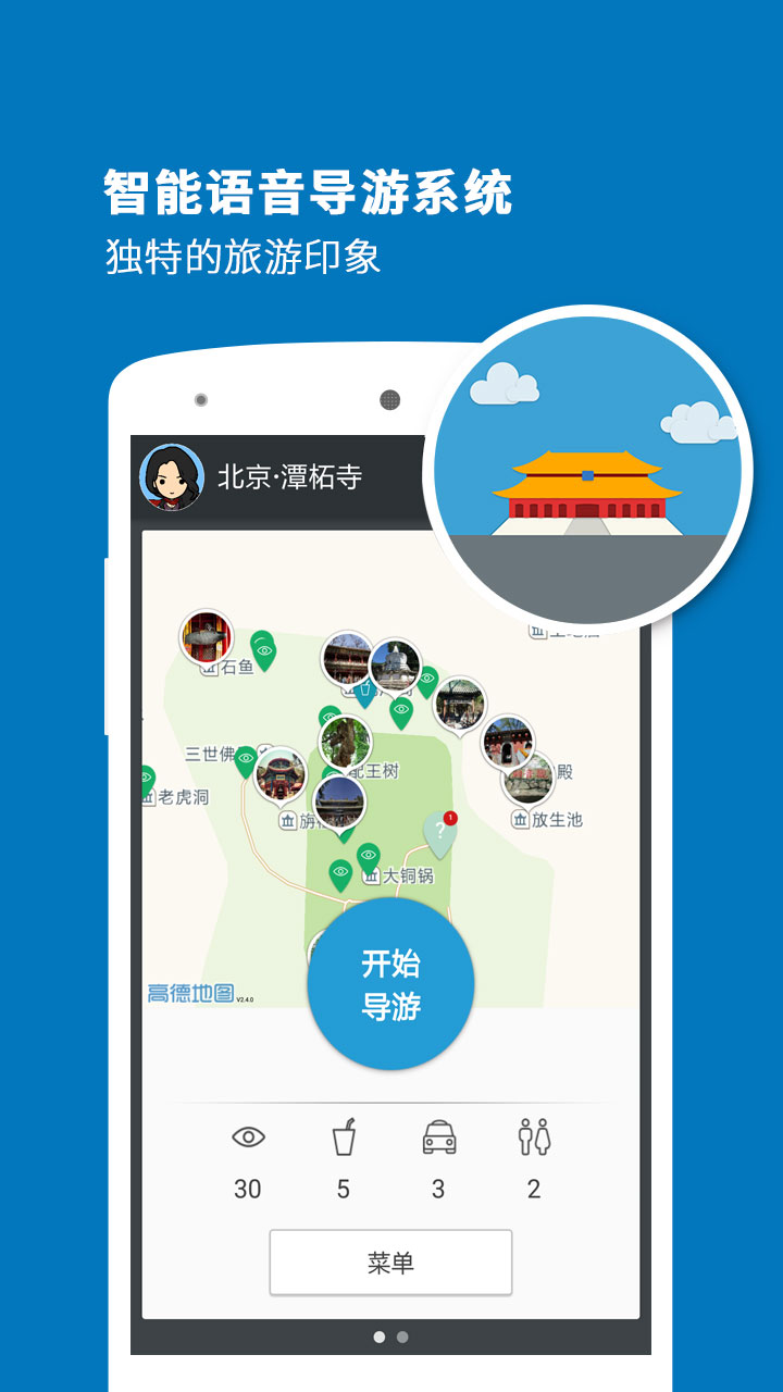 导游-步行和行车导游双模式随您选择,通过GPS定位为您精准播报每个景点的历史文化和内涵攻略-详细的景点门票、交通、住宿、商店等实用信息