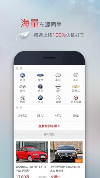【买车服务】海量车源同享:全国诚信车商联盟,精选上线100%认证好车。