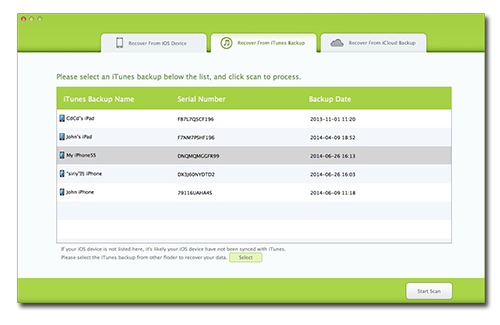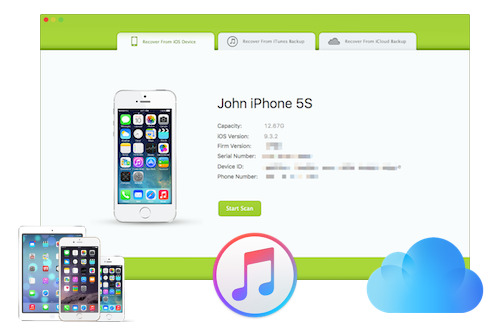 从iDevice直接恢复数据,iTunes或iCloud备份该救援包括回收的三种方式。一个是恢复丢失或意外删除的数据从您的iPhone,iPad或iPodtouch直接与其他两种方法检索数据从以前的iTunes或iCloud的备份。所以没有什么担心,如果你忘了备份你的iOS设备上的所有数据。