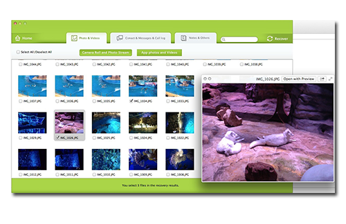 支持的文件类型:短信、联系人、照片、视频、笔记、通话记录、日历、提醒、Safari书签、语音备忘录、社交媒体和邮件中的附件。