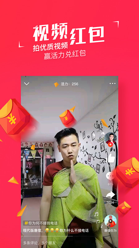 拍摄优质视频就能得到发放的活力值(红包),视频质量越高、趣味性越强、受欢迎程度越高就能获得更多活力值,活力值可以兑换成现金并微信提现。