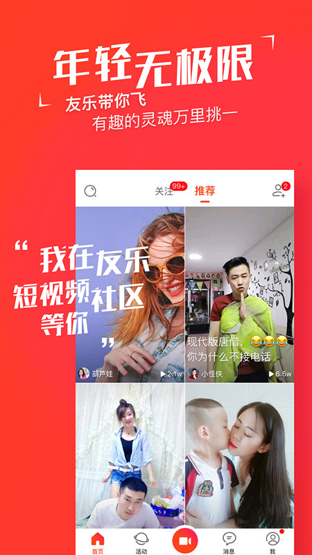 友乐是一款展现个人风貌,记录多才生活的短视频拍摄软件。友乐以“汇聚年轻的心”为核心,旨在拍摄生活中有趣的场景、生活百态、娱乐才艺以及搞笑段子等内容,打造传播欢笑的短视频社区。【软件特点】