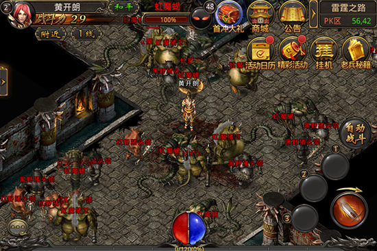 强PK!强IP!《热血传奇手机版》战士、法师、道士三大职业。战士,以强有力的体格为基础,特殊之处在于用剑法及刀法等技术。对打猎、战斗比较适用。体力强的战士能带许多东西,即便穿戴沉重的武器及铠甲也可以自由活动。但战士所戴的铠甲对魔法的防御能力相对较弱。