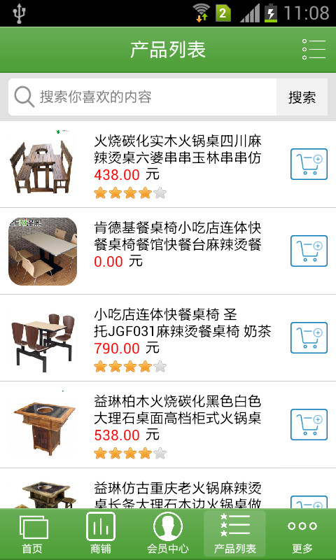 【产品列表】:本应用提供相关各种产品分类,方便客户查询购买。