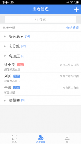 1、患者报到-及时查看新患者2、患者管理-依据病情分组