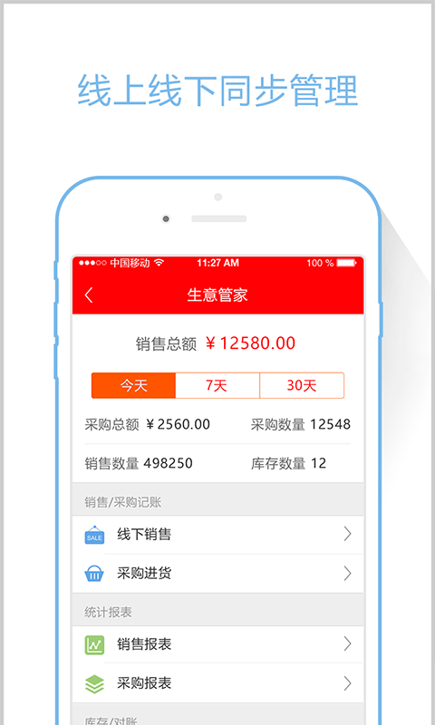 1.操作简单 10秒免费开店,界面简洁、功能完善;2.POS系统 线上线下进销存同步管理,随时随地了解盈亏库存;