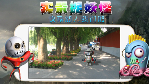一起打开手机,寻找藏在身的妖怪吧!瞄准,然后射击!游戏是利用手机摄像头拍摄真实场景的重力感应射击游戏,打开游戏后,手机摄像头自动打开,此时在手机上出现各种妖怪、精灵、飞行物,玩家可自行选择妖怪和精类类型,有如身临其境,无限想象。有各种可爱妖怪、精灵、外星飞碟,水果大战,还有疯狂酒吧模式,玩家只需晃动手机寻找目标,点击开火射击,瞬间打掉目标!!!多种游戏模式,每种都有不同体验,另有无限模式,真实的子弹射击音效,绝对让你爽到极点!