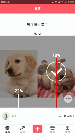 5.系统每天会推送精品微愿给用户来投票