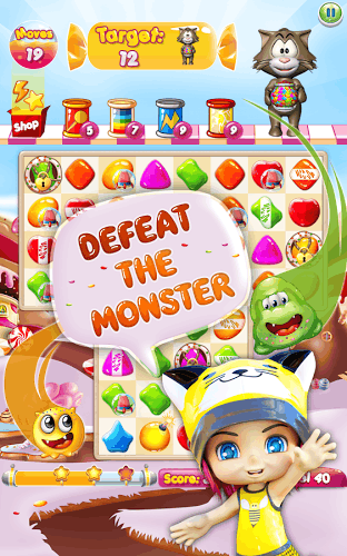 甜蜜的仙境是一款休闲消除类游戏。游戏中有着多种模式供玩家选择,同时还有着更多的关卡等你来挑战,经典的消除不同的玩法,给你带来更多的乐趣,感兴趣的快来试试吧。美味的比赛3益智游戏与可爱的人物和有趣的冒险的美味的土地!帮助艾玛收集果冻,并通过许多粘性的土地享受香甜的月饼,但要小心的怪物!他们尽量吃的食物和决策的障碍,所以艾玛-乔利蟹必须击败的怪物,使土地成为真正的仙境!有了令人难以置信的图形,新角色和挑战的冒险,甜仙境是一个比赛3场比赛,这将使你的一天充满欢乐!