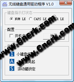 很多无线键盘都没有状态指示灯的,到底按了大小写切换键没了也不知道,虽然很多无线键盘都自带了驱动,但是安装麻烦,有了这个小程序就好办了,无需安装即可使用,使用时只需双击托盘图标,选择开机启动即可。