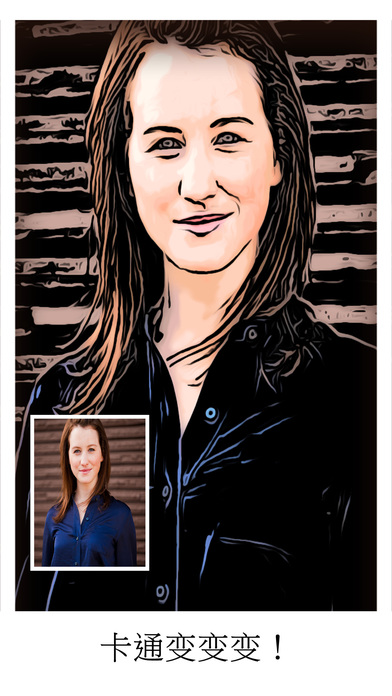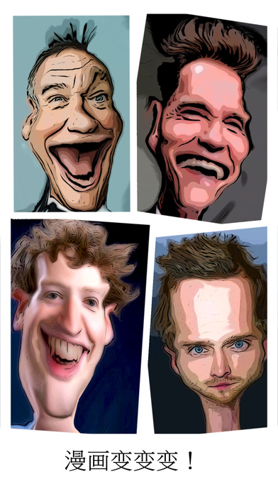 + 图片编辑:把照片剪切至一定尺寸,更改亮度、对比度和饱和度。+ 不同的漫画风格:漫画、剪纸、肖像、风景或细节。
