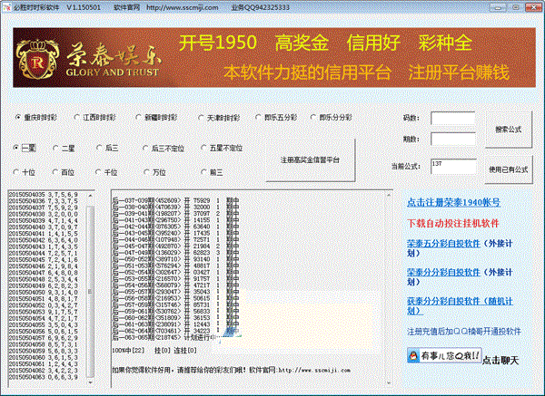 必胜时时彩软件通过统计的方式通内置的数百条公式进行纺计,找出当前期数和码数设置中表现最好,最稳定的公式。比如后一5码三期,玩家设定了期数和码数这两个参数之后,只要点击搜索公式,软件就会给出最好最稳定的结果展现在当前公式中。通过本软件,你可以结合自己的方法让你精准投注号码,帮你减少不必要的投注,让你的投注更有目的性和准确性。此外,本软件还有相关时时彩玩法的技巧论坛,数千名高手在上面发表了自己玩彩的心得体会,让在彩市迷途的你更快找到方法,找到技巧。